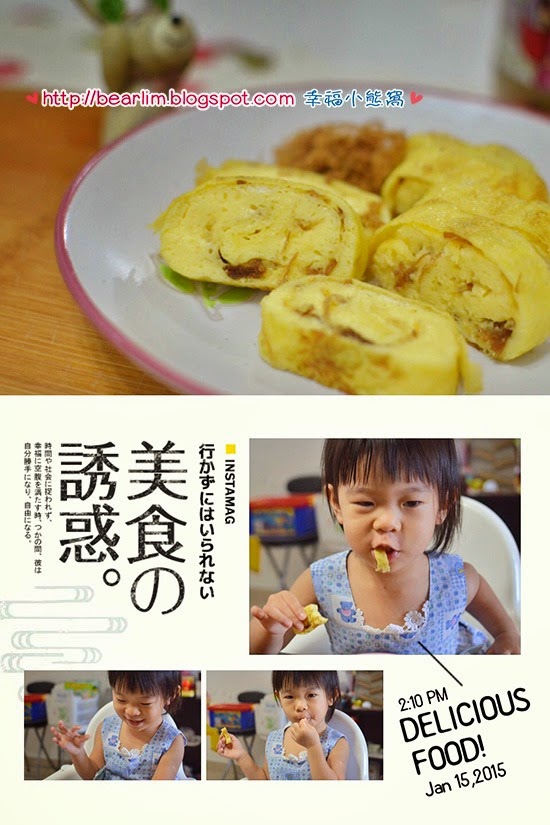 今天用了源珍香的牛肉丝做肉松鸡蛋卷给Eva,她很喜欢。(# ̄▽ ̄#)